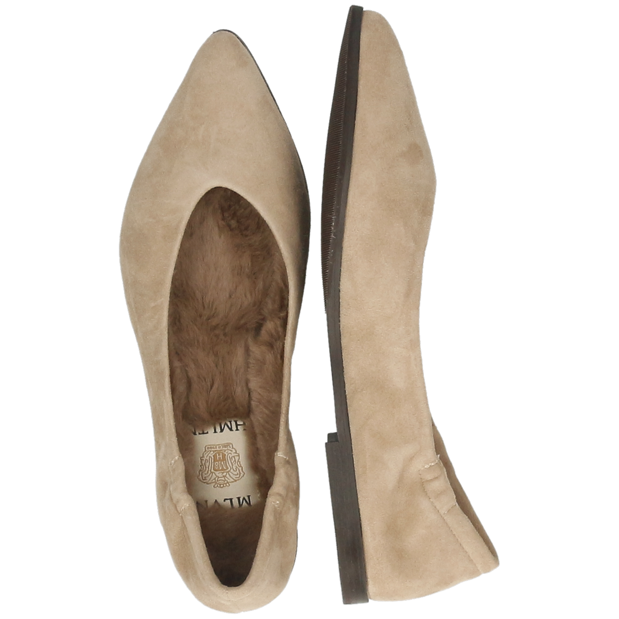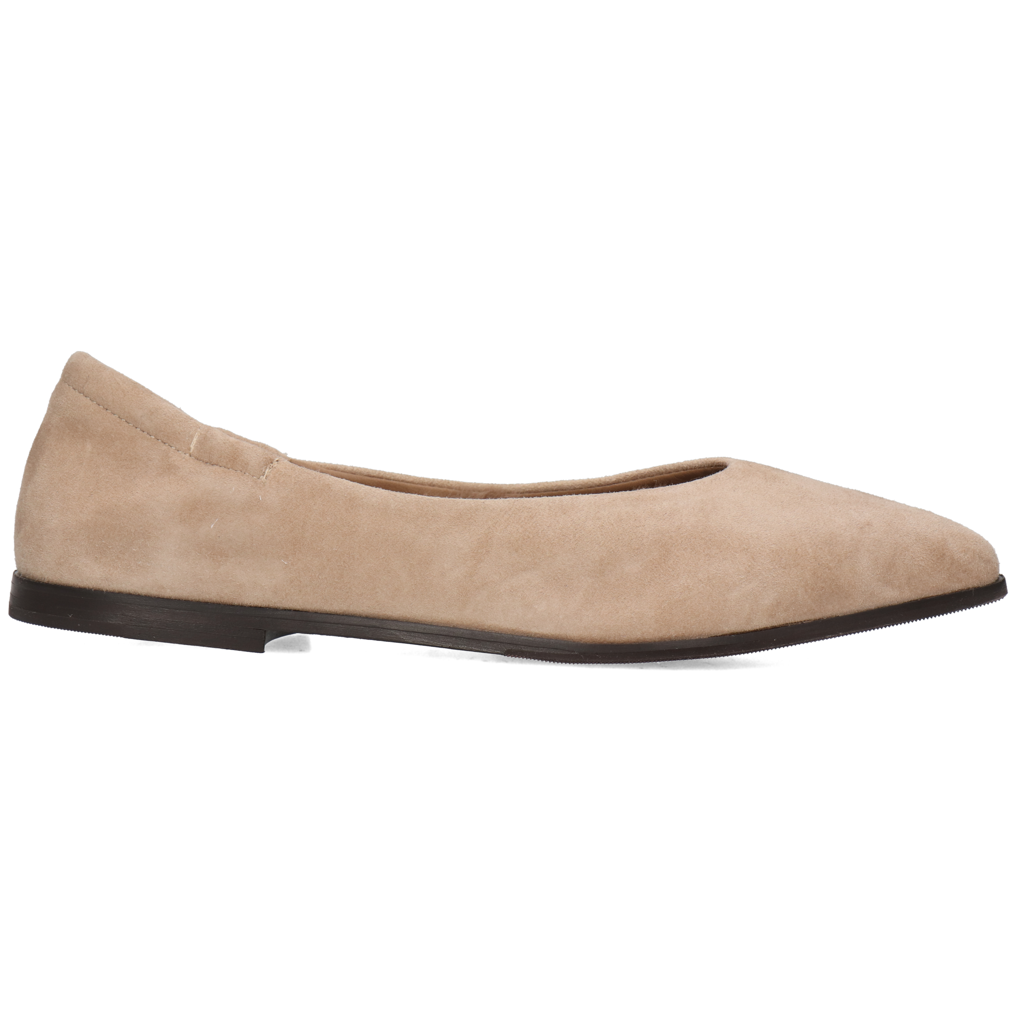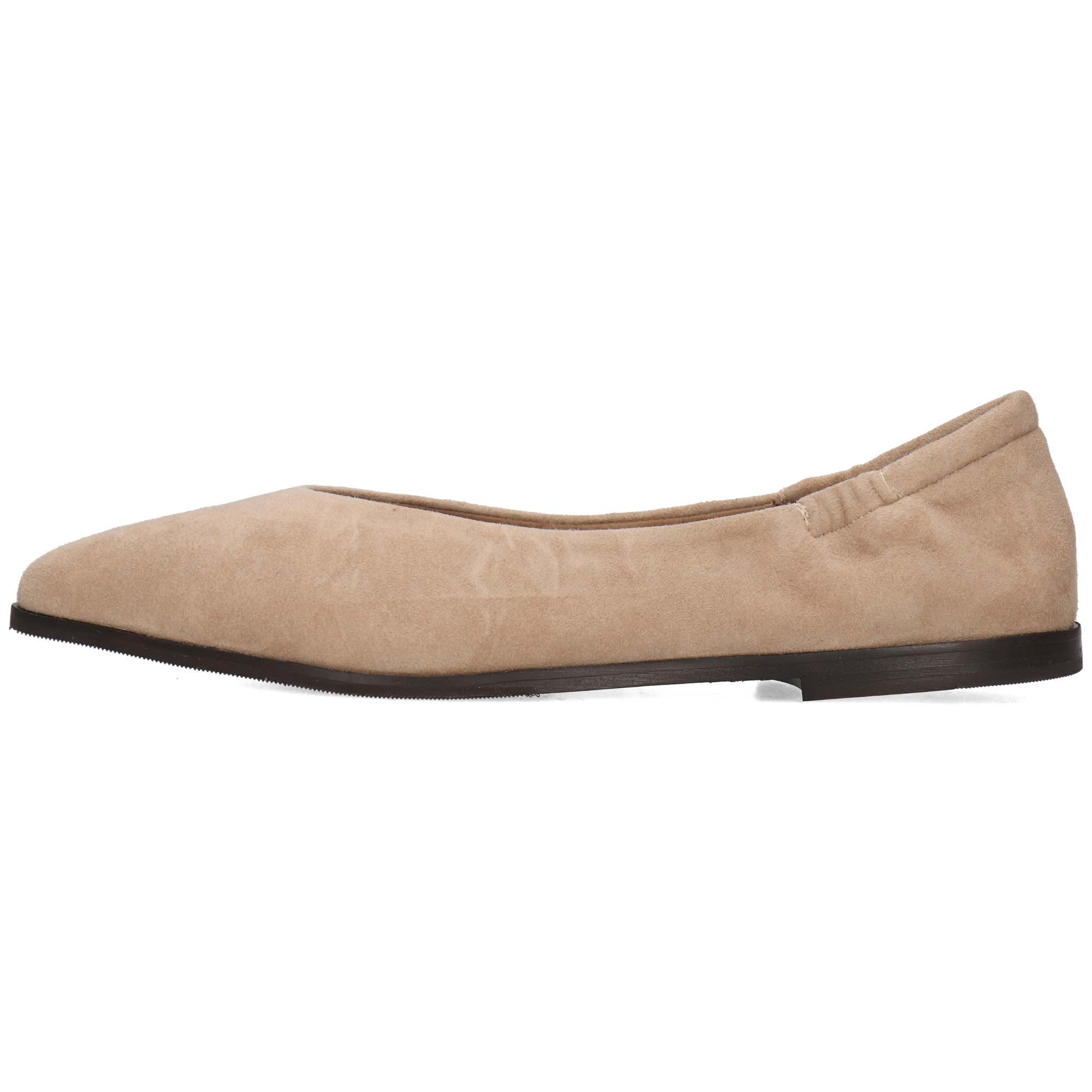 Świetna alternatywa dla zamkniętych butów na cieplejsze dni jesieni, te płaskie baleriny i ich Skóra zamszowa oraz Beżowy kolor są idealnym uzupełnieniem klasycznego stroju biznesowego lub będą towarzyszyć Ci na spotkaniach z przyjaciółmi. Elementy takie jak Gumowo-skórzana podeszwa oraz spiczasty nosek sprawią, że te eleganckie, kobiece i ponadczasowe baleriny staną się niezbędną częścią Twojej szafy!