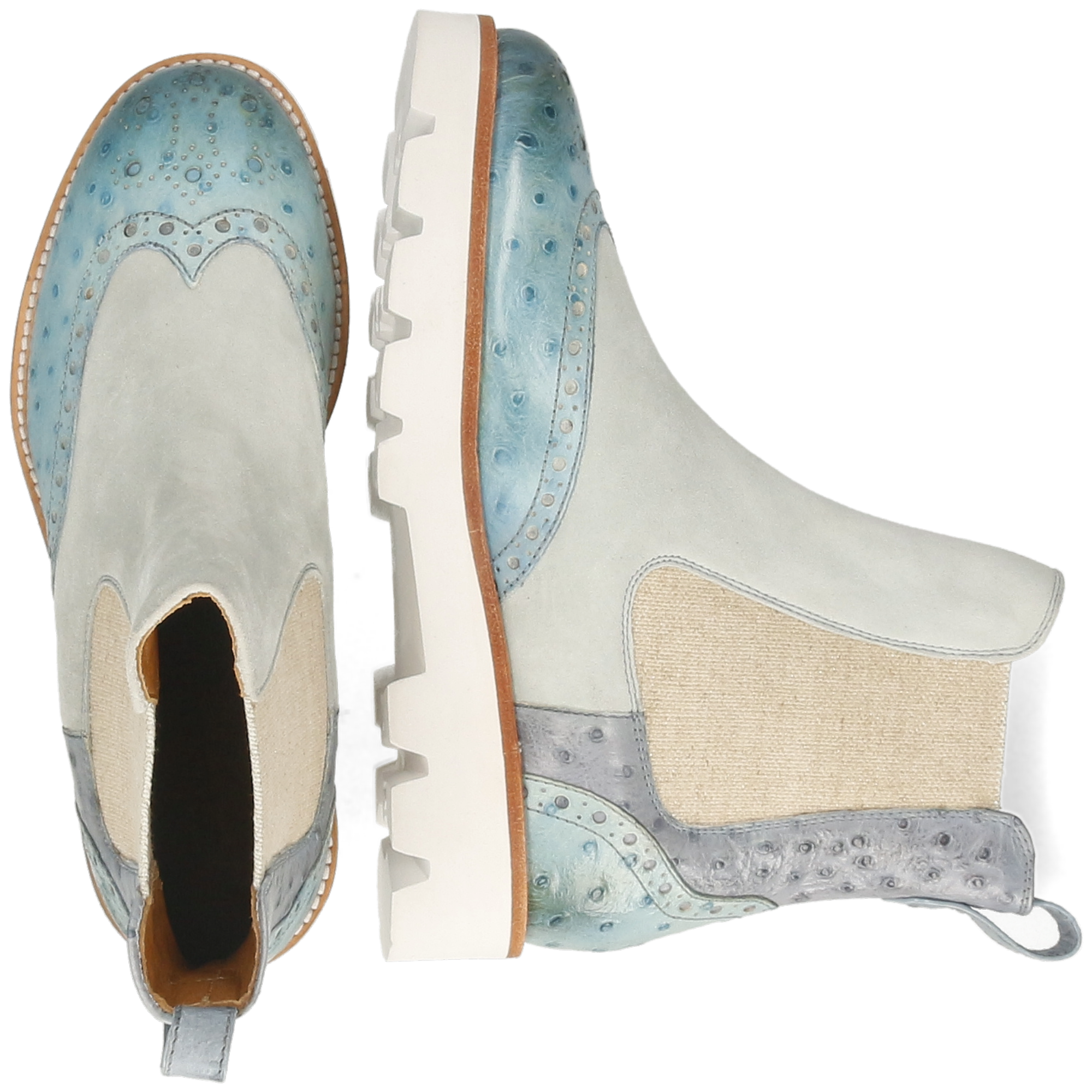 - Podeszwa: Gumowo-skórzana