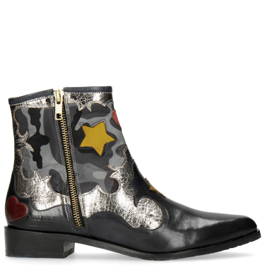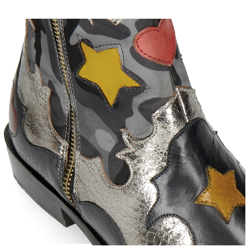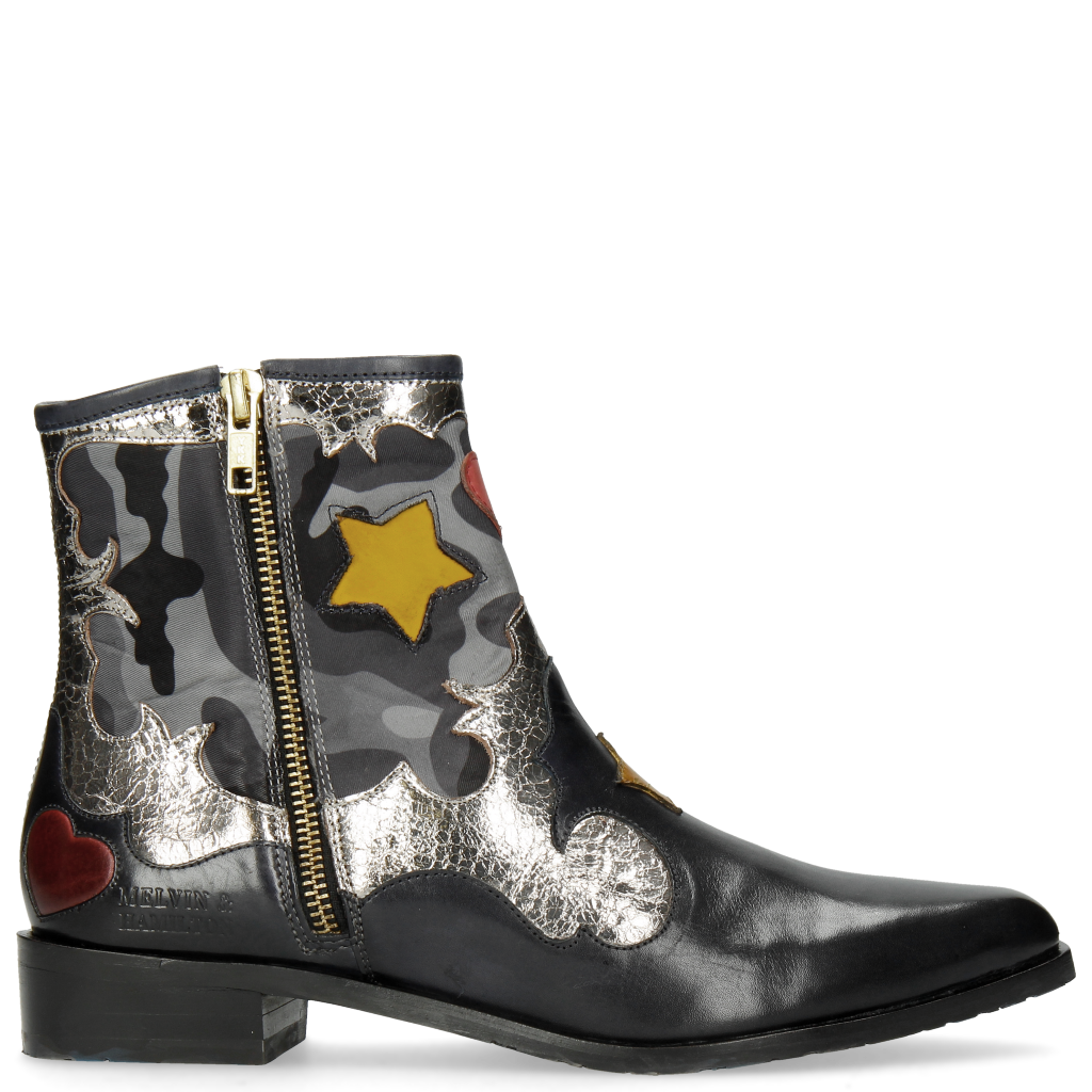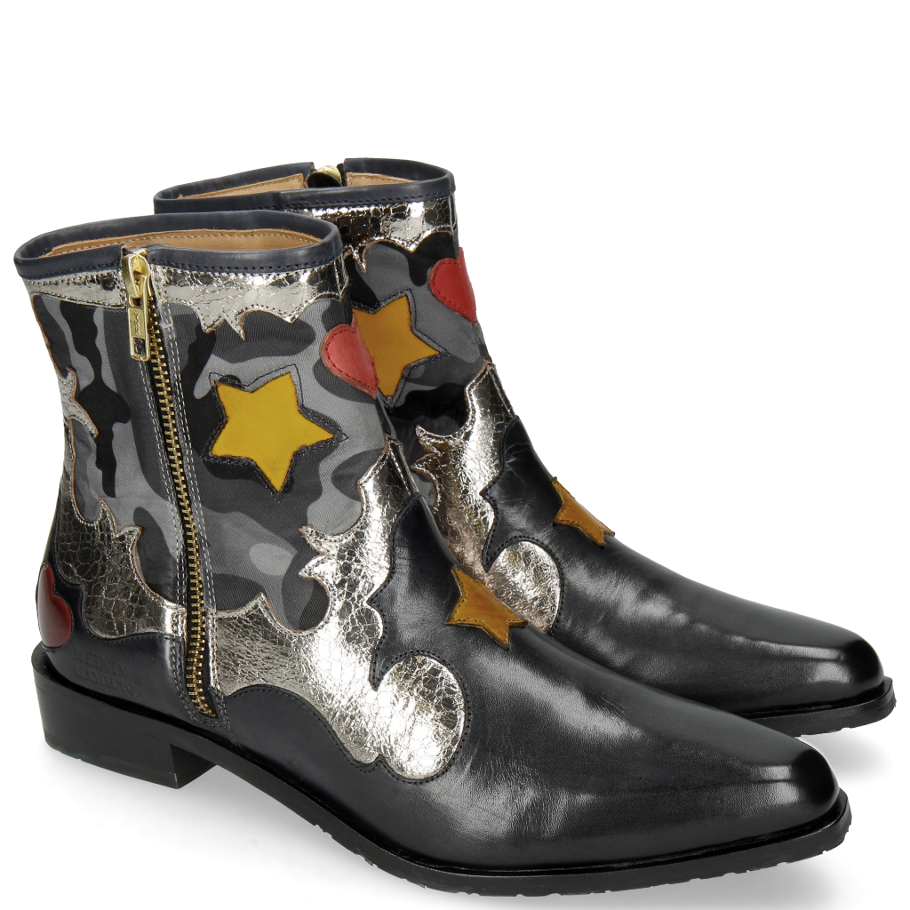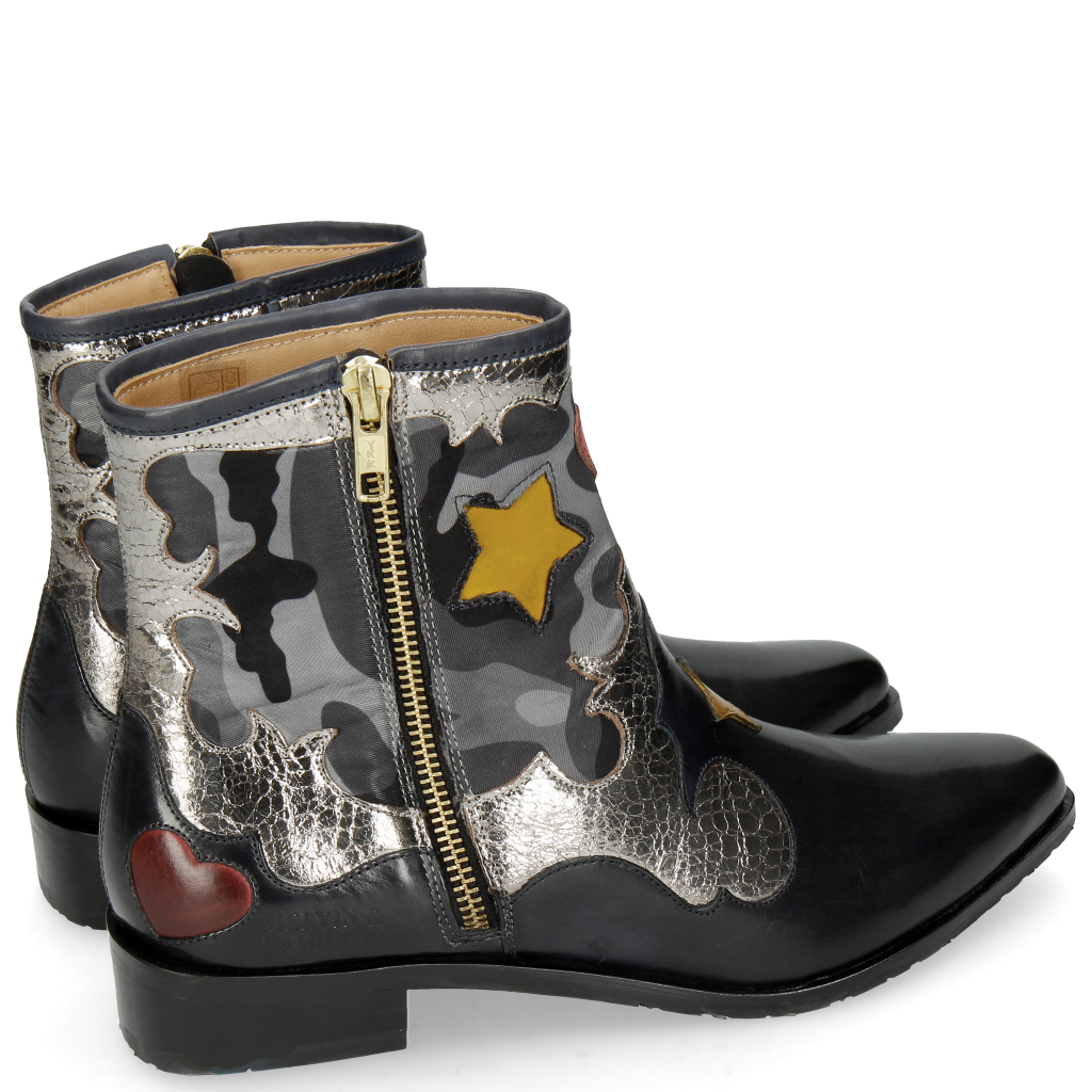 Navy Cromia Gunmetal Camo Satin Blue Stars Yellow Heart Ruby